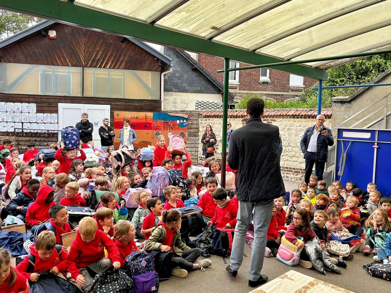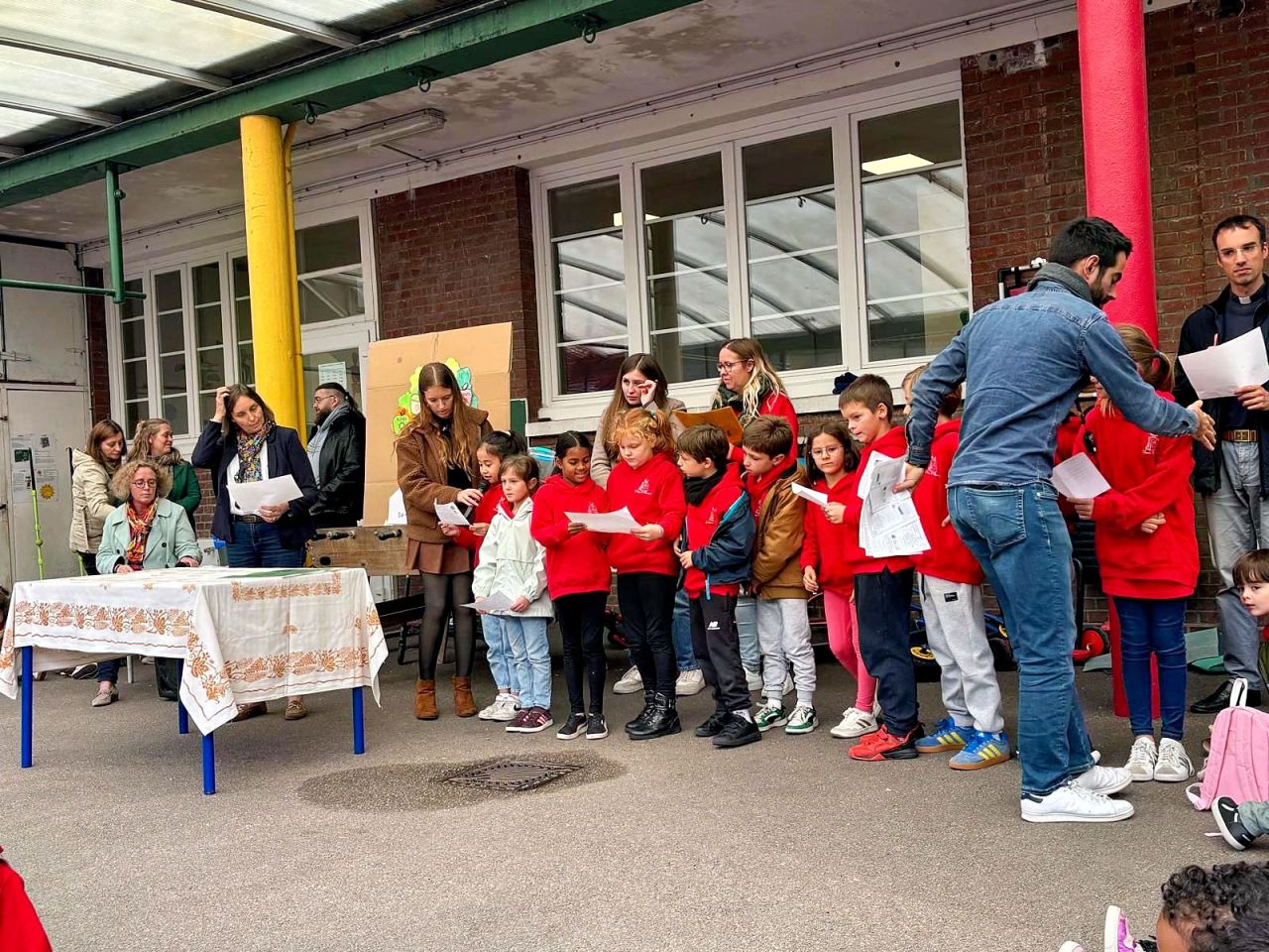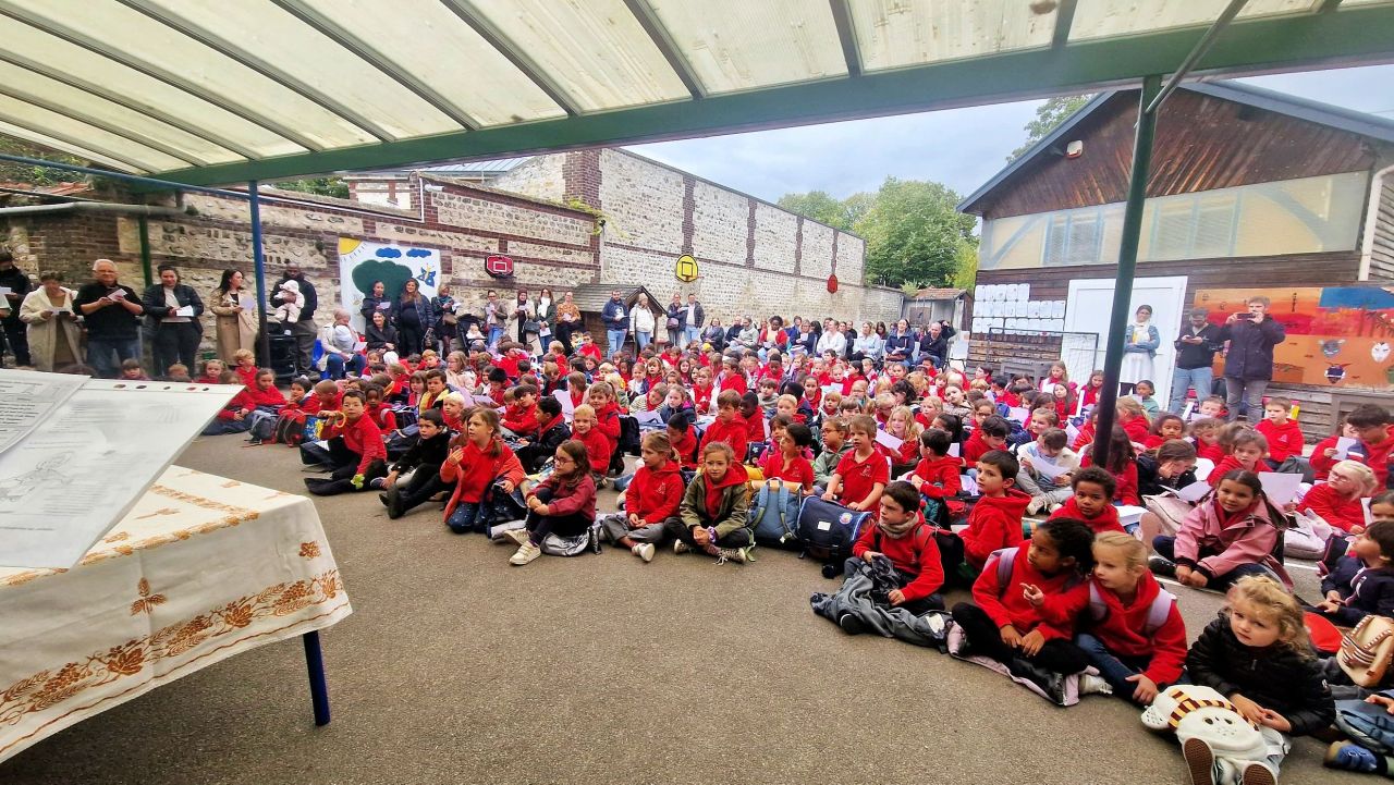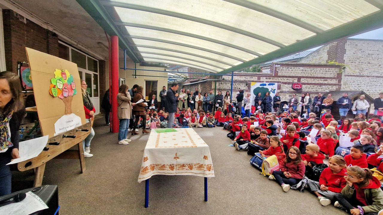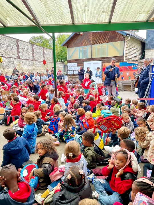 Vendredi 3 octobre, toutes les élèves se sont retrouvées pour la présentation des œuvres de rentrée. Les classes ont travaillé en binômes pour illustrer le fil rouge de notre année : la biodiversité. Ainsi les PS-GS ont fleuri nos bacs avec de jolies fleurs en matériaux recyclés, les MS - MSPP ont réalisé une magnifique tortue de mer en bouchons; les CP-CE2 ont fabriqué une ruche entourée d'abeilles, les CE1- CE1P un arbre d'automne et les CM1-CM2 un puzzle géant représentant...