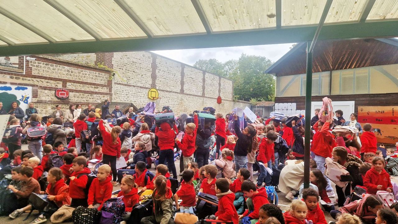 Cette année, nous avons instauré le port de "l'uniforme" tous les lundis à l'école. Les élèves portent tous un polo et un sweat rouges. Lundi dernier nous avons donc découvert pour la première fois l'effet produit dans nos classes et la cour de récréation.